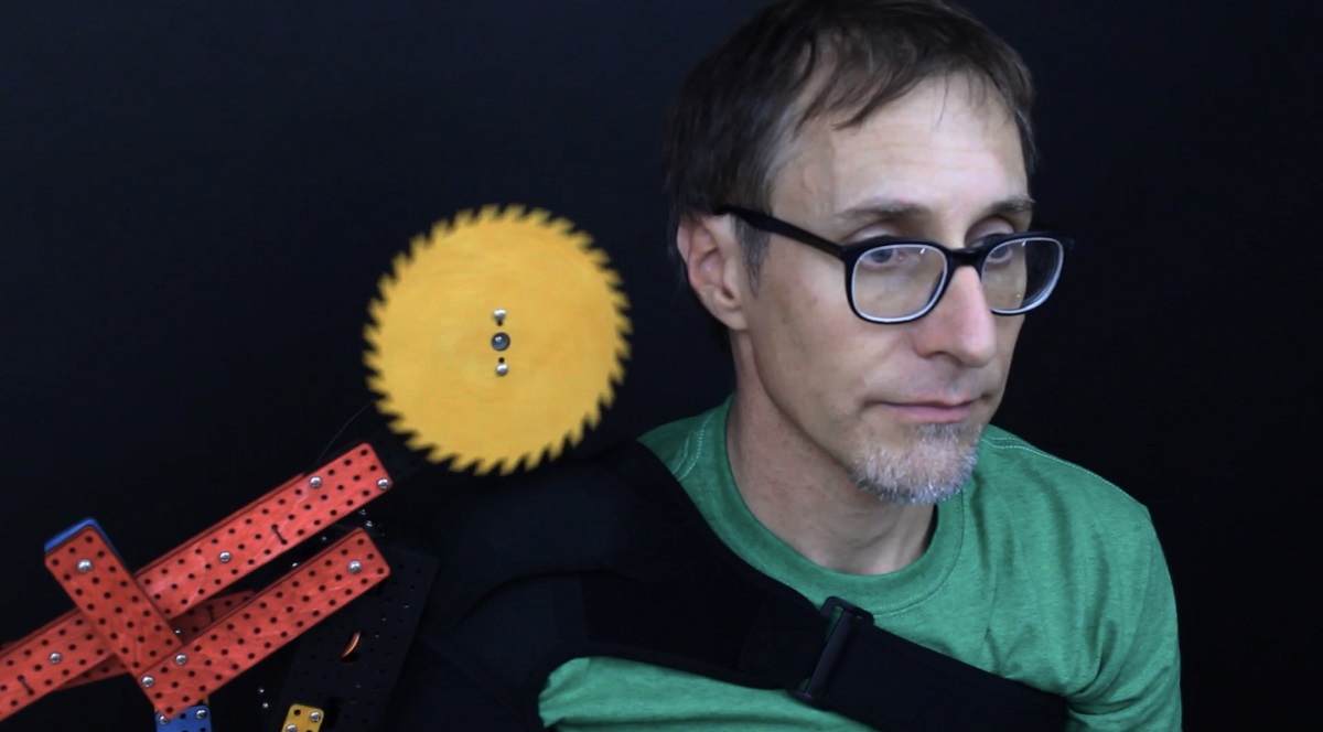 The way Gilbert works is a lot like having Tourette’s. He has his own internal rhythm. Passively and randomly, Gilbert begins to "wake up." The saw blade starts spinning and the robotic arm extends, moving that blade closer to my head.