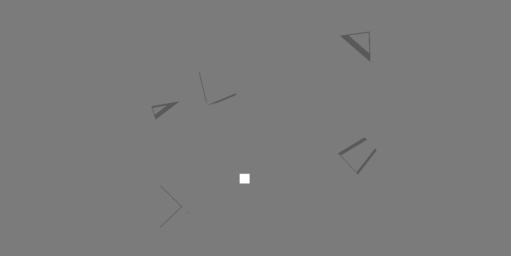In the center of the screen sits a single white cube—the "self"—surrounded by a swarm of darker, irregular fragments. These shapes represent the "bad thoughts," and they are programmed with a relentless tracking logic: find the white cube. They aren't "smart" in a modern AI sense; they are just sensors locked onto a target, closing in with a slow-burn persistence.