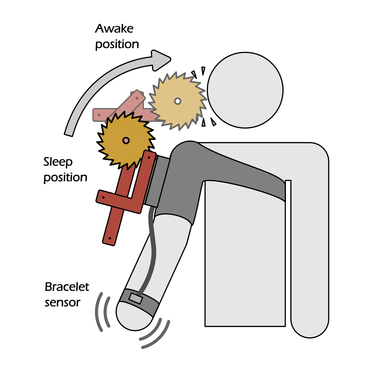 As it gets closer, the pressure builds. To put Gilbert back to sleep for a while, I have to flick my wrist. Gilbert uses an accelerometer to track my wrist movement in 3D space. This allowed me to customize the software so the trigger closely approximates the specific motor tic I had as a child. By twisting my wrist in that specific way, I satisfy the urge. I reclaim a little bit of control, but it’s a messy process, and the physical intensity of the machine often triggers other related tics, creating a constant back-and-forth between my body and the machine.