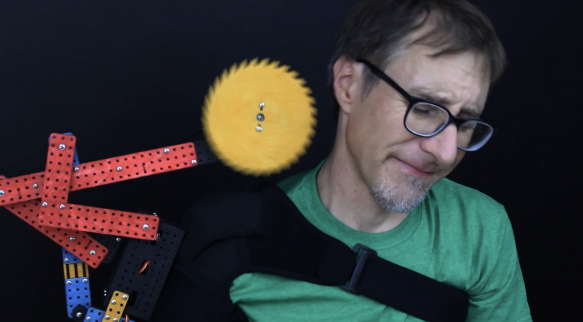 The way Gilbert works is a lot like having Tourette’s. He has his own internal rhythm. Passively and randomly, Gilbert begins to "wake up." The saw blade starts spinning and the robotic arm extends, moving that blade closer to my head.